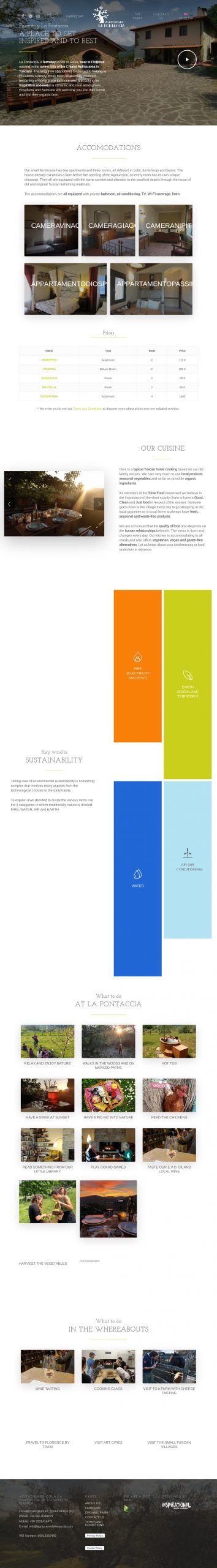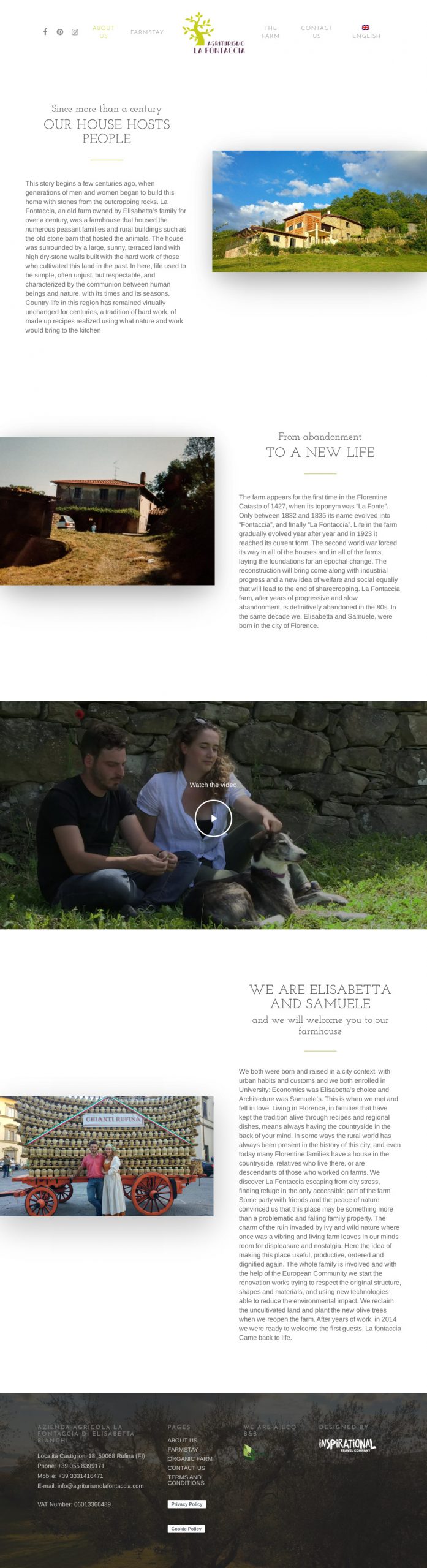 Agriturismo La Fontaccia nasce grazie ad Elisabetta e Samuele, che trasferitisi dalla città, decidono di trasformare il vecchio podere di proprietà della famiglia di Elisabetta da oltre un secolo, che era una casa colonica ed ospitava le numerose famiglie dei contadini e gli annessi rurali come stalla e fienile per ospitare gli animali da lavoro, in agriturismo e azienda agricola nella campagna toscana.