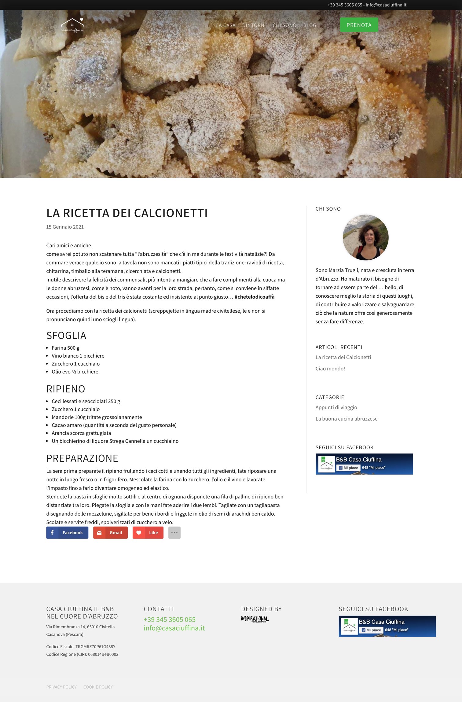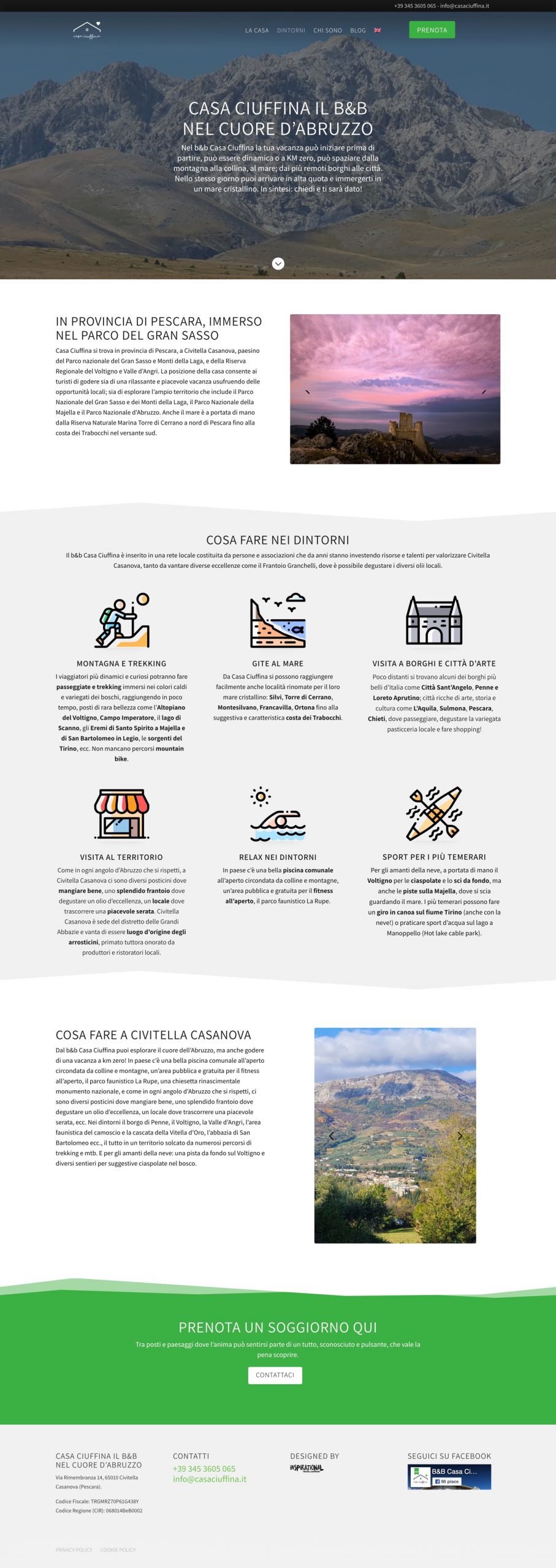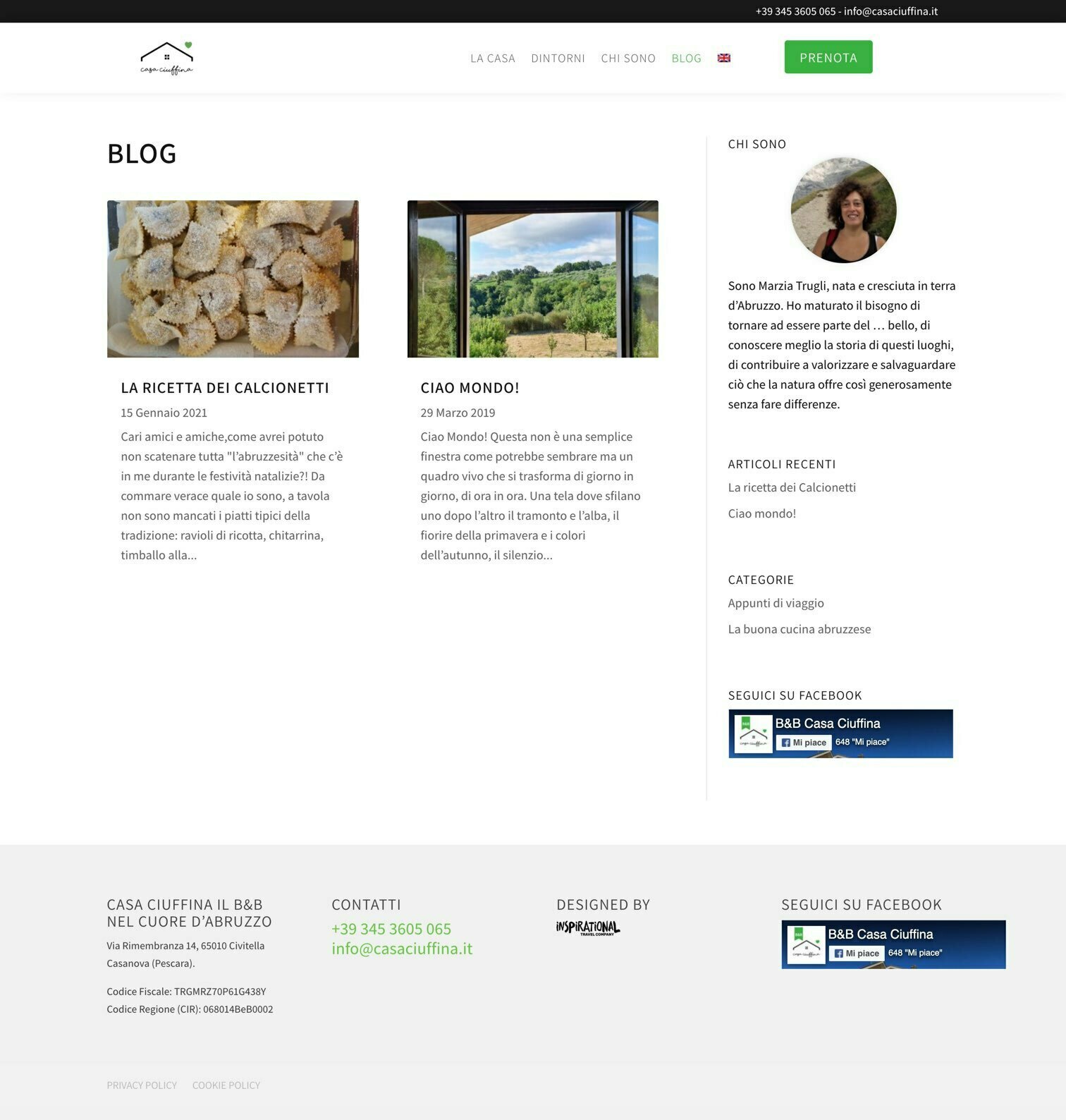 Basato su WordPress e Divi, il sito bilingue è realizzato in stile moderno, semplice e che rispecchi il meraviglioso ambiente naturale nel quale è immersa Casa Ciuffina. La sezione blog darà spazio a Marzia per pubblicare news, pensieri e ricette, mentre la pagina prenota, raccoglie le prenotazioni che arrivano dagli utenti.