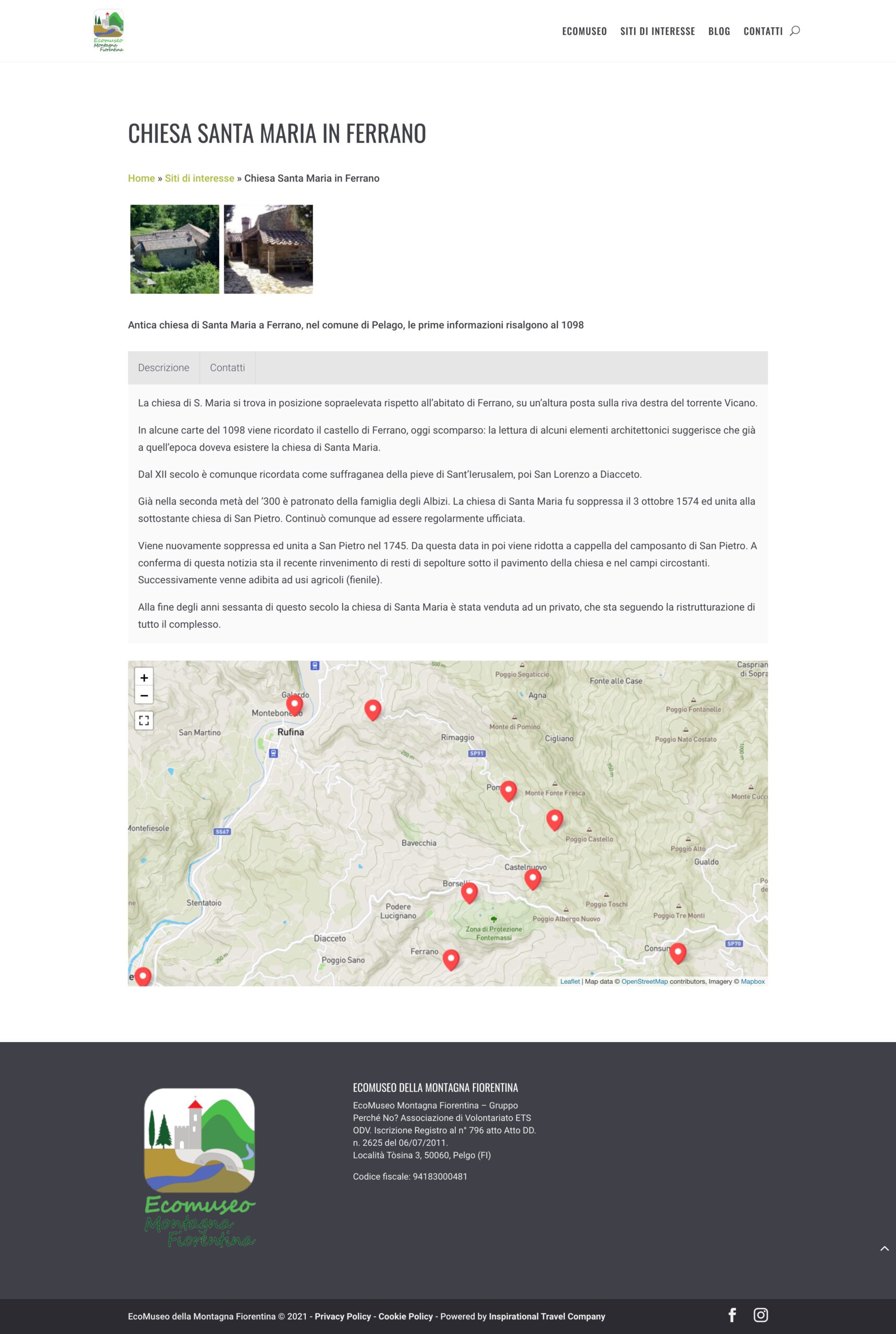 Oltre ad una funzione informativa, il sito web (basato su WordPress e Divi), ha l’obiettivo di fornire ai visitatori una mappa interattiva con i punti di interesse curati e gestiti dal ecomuseo. Grazie a questa mappa interattiva i visitatori del sito possono localizzare agevolmente il POI sulla mappa, filtrare per categorie o effettuare una ricerca per nome.